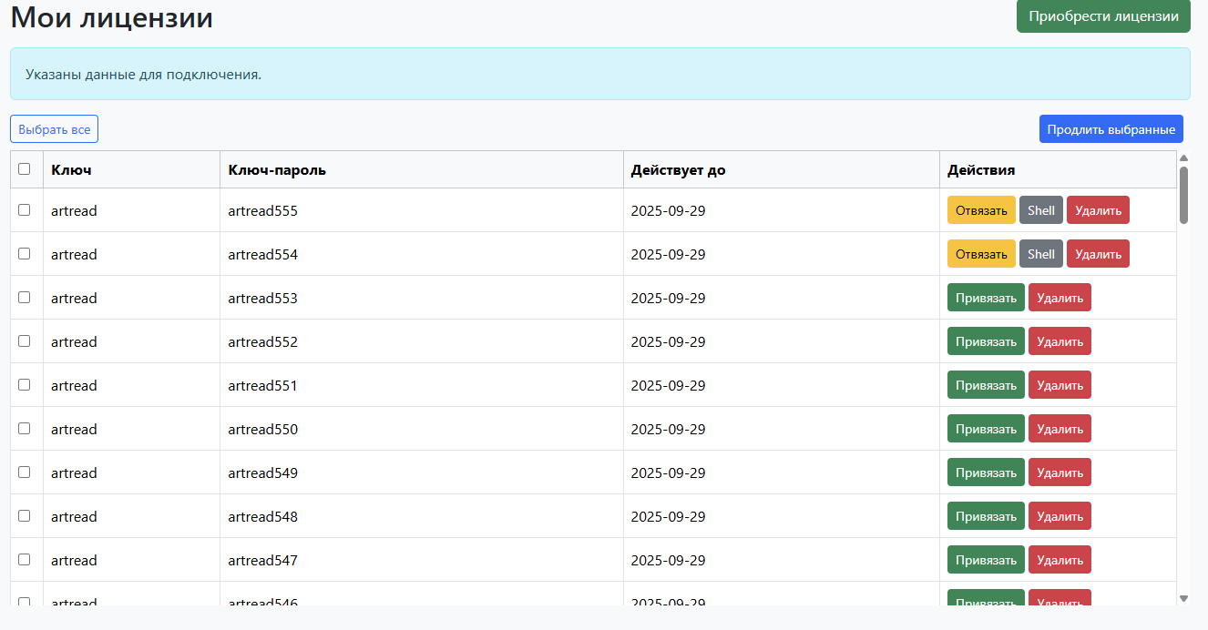 После входа в учетную запись отобразится список доступных лицензий