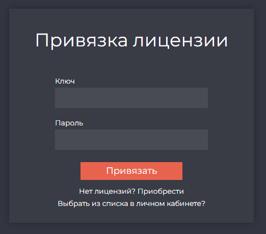 Что бы привязать лицензию необходимо использовать кнопку "Привязать"