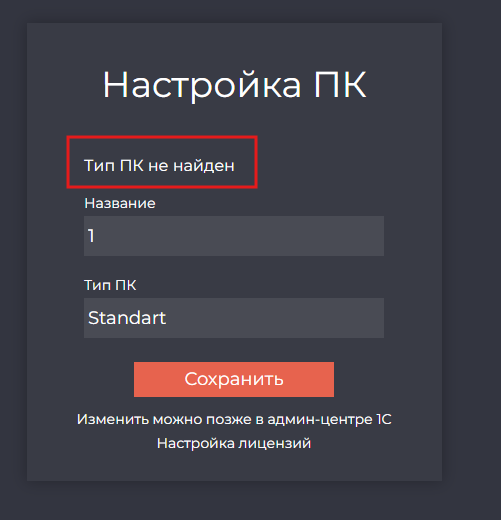 К этому этапу в админ-центре (в браузере на admin.cybsoft.tech) уже должны быть созданы типы ПК. В противном случае будет выведено сообщение: